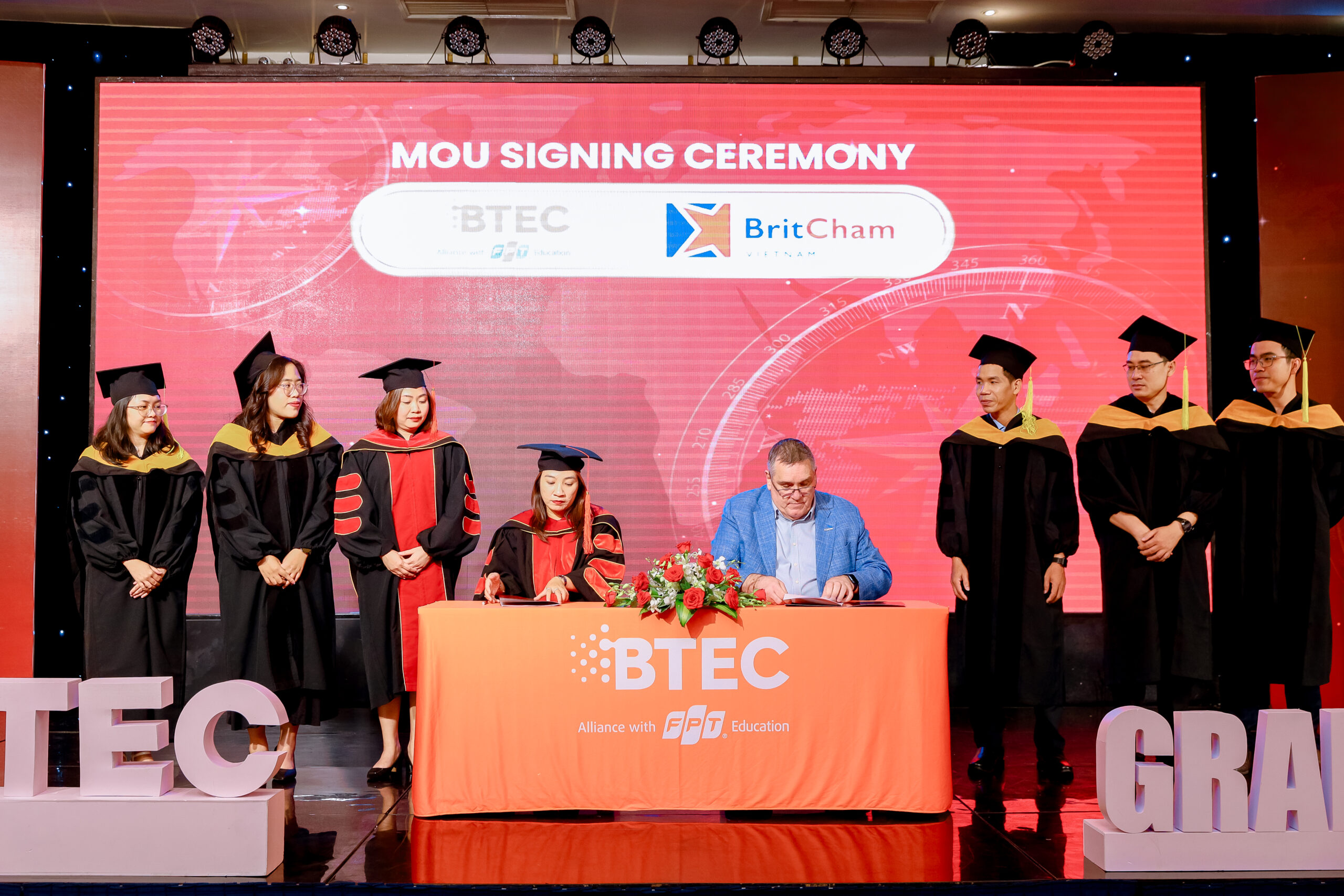 Điểm nhấn của buổi lễ là lễ ký kết hợp tác giữa FPT BTEC và Hiệp hội Doanh nghiệp Anh Quốc tại Việt Nam (BritCham Vietnam), mở ra thêm nhiều cơ hội quốc tế cho sinh viên trong tương lai. Sự kiện có sự tham dự của Ban lãnh đạo nhà trường, đại diện BritCham, các doanh nghiệp đối tác, cùng đông đảo giảng viên, sinh viên và phụ huynh.