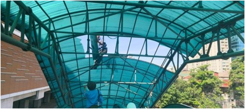 Đối với hạng mục mái che thang cuốn và lối đi bộ ngoài trời tại một số nhà ga, đến ngày 2.6, Hanoi Metro đã tháo dỡ và thay mới toàn bộ mái che thang cuốn và lối đi bộ bị hư hỏng tại các ga: Thái Hà, Vành đai 3, Văn Quán và Yên Nghĩa.
