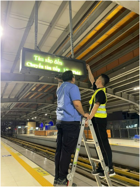 Cùng với đó, đơn vị đã điều chỉnh, khắc phục tạm thời hệ thống LED PIS (hiển thị giờ chạy tàu) để đảm bảo hành khách có thể theo dõi giờ tàu đến và giờ tàu đi tại toàn bộ 12 nhà ga. Hệ thống hiển thị giờ tàu dự kiến sẽ được khắc phục hoàn toàn trước ngày 20.6.