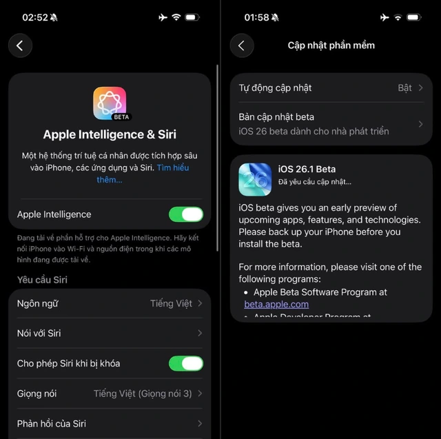 Apple từng thông báo từ cuối năm 2025, Apple Intelligence sẽ hỗ trợ tiếng Việt. Với sự xuất hiện trên phiên bản iOS 26.1 Beta, người dùng sẽ không cần phải đợi lâu cho tới khi hãng phát hành iOS 26.1 chính thức, đặc biệt khi bản iOS 26 hiện hành đang gặp nhiều phản ánh tiêu cực về các lỗi vặt và tình trạng nóng máy, hết pin nhanh bất thường.