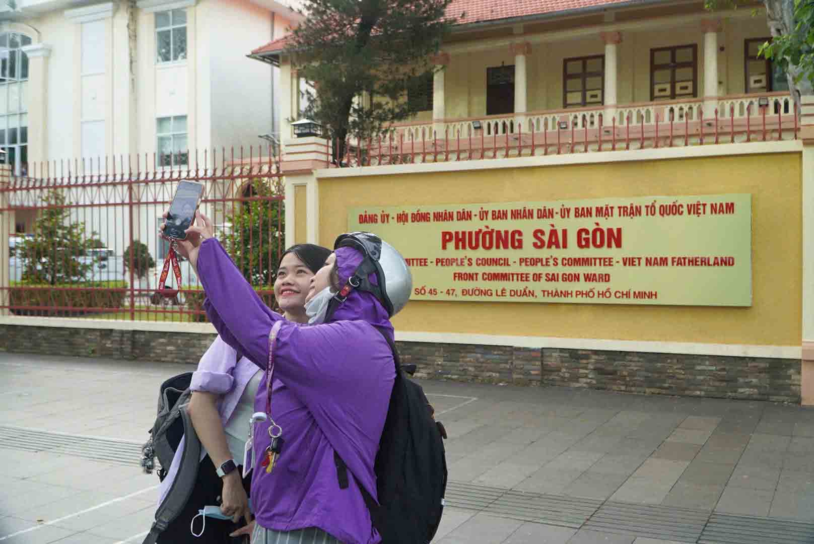 Ghi nhận của Lao Động từ sáng sớm 1.7, nhiều người dân đang sinh sống và làm việc tại TPHCM đã tranh thủ đến check in (chụp ảnh lưu niệm) với bảng tên “phường Sài Gòn”.