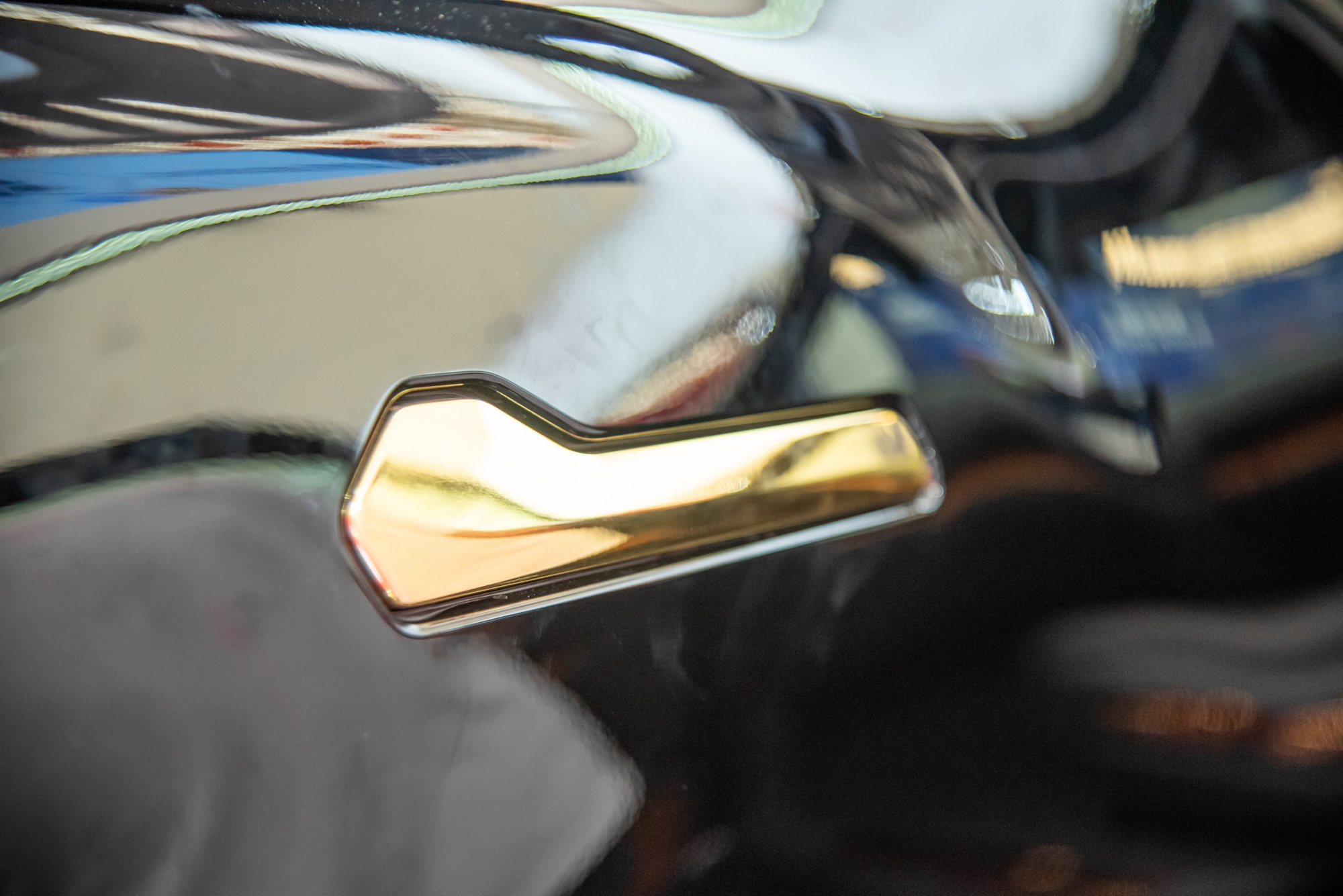 Tay nắm cửa giữ thiết kế dạng ẩn tương tự VF 9, nhưng được phủ lớp mạ vàng tạo điểm nhấn sang trọng