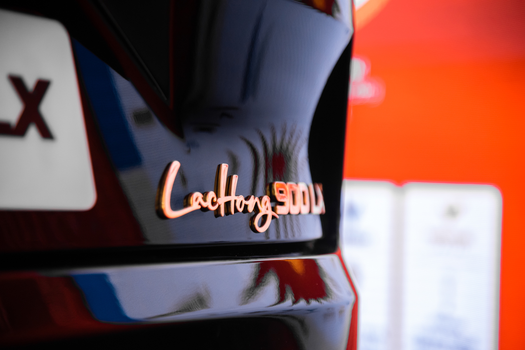 Ngay phía sau, bộ tem tên xe “Lac Hong 900 LX” cũng được xử lý mạ vàng, tăng thêm dấu ấn sang trọng và khác biệt cho mẫu xe đặc biệt này