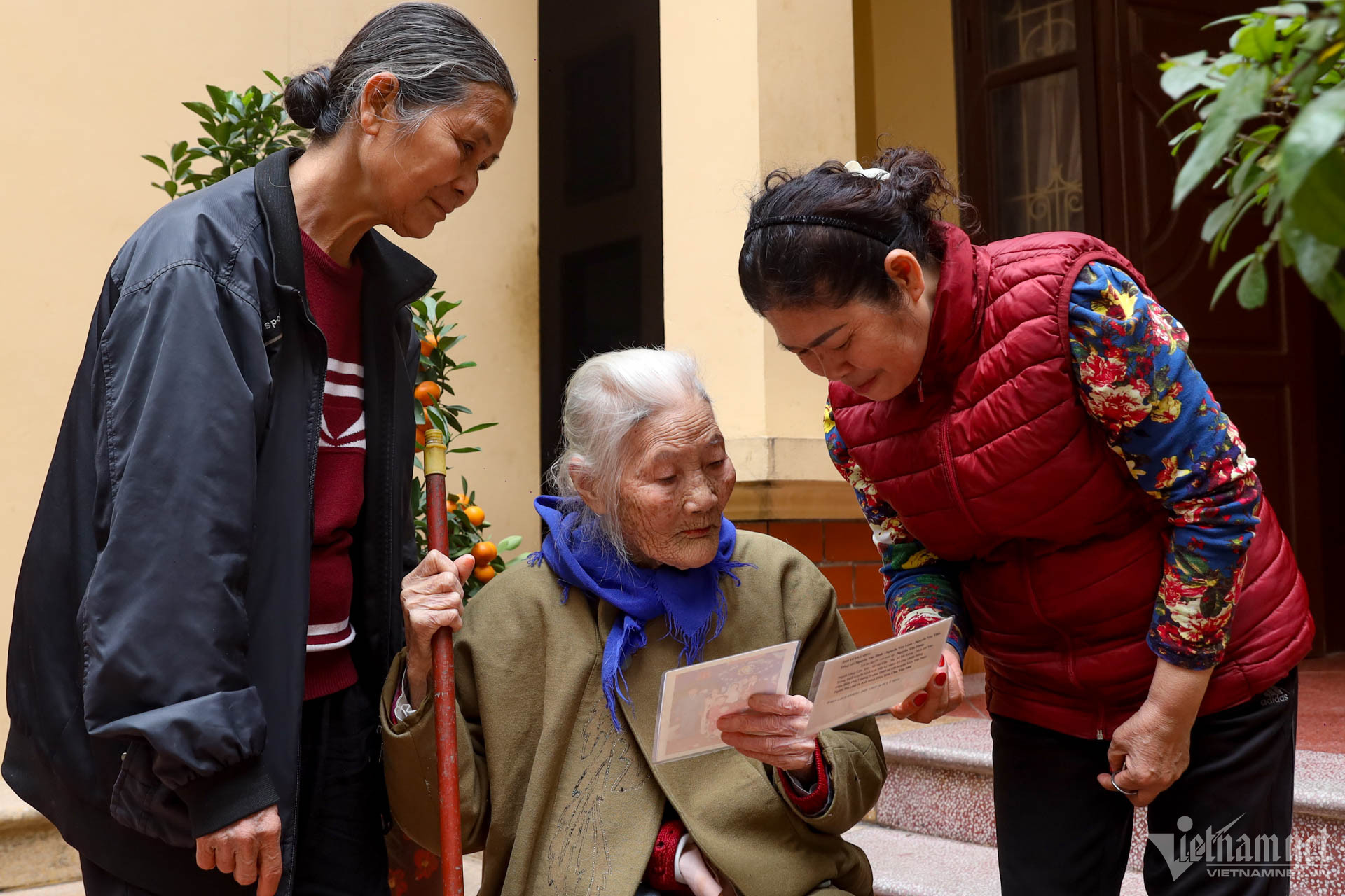 Cụ Tít có tất thảy 12 người cháu nội ngoại và hơn 20 người chắt. Mỗi dịp tề tựu, cụ nhìn từng lượt, đếm rồi nhắc tên cháu, chắt nào bị vắng mặt. “Trời thương cho u tôi 101 tuổi nhưng ngày vẫn 2-3 lượt đi bộ sang nhà con trai, không thấy cháu đâu liền hỏi ngay”, cô Thanh kể.