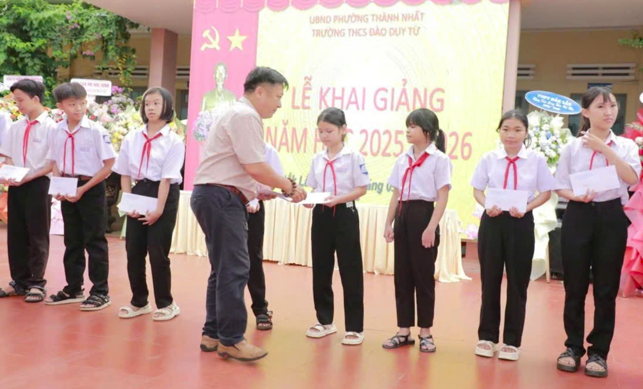 Sáng ngày 5/9/2025, trong không khí vui tươi, phấn khởi của Lễ khai giảng năm học mới 2025 – 2026, một số cá nhân đã vận động kinh phí từ các nhà mạnh thường quân đã tổ chức trao 50 suất quà cho các em học sinh có hoàn cảnh khó khăn tại Đắk Lắk.