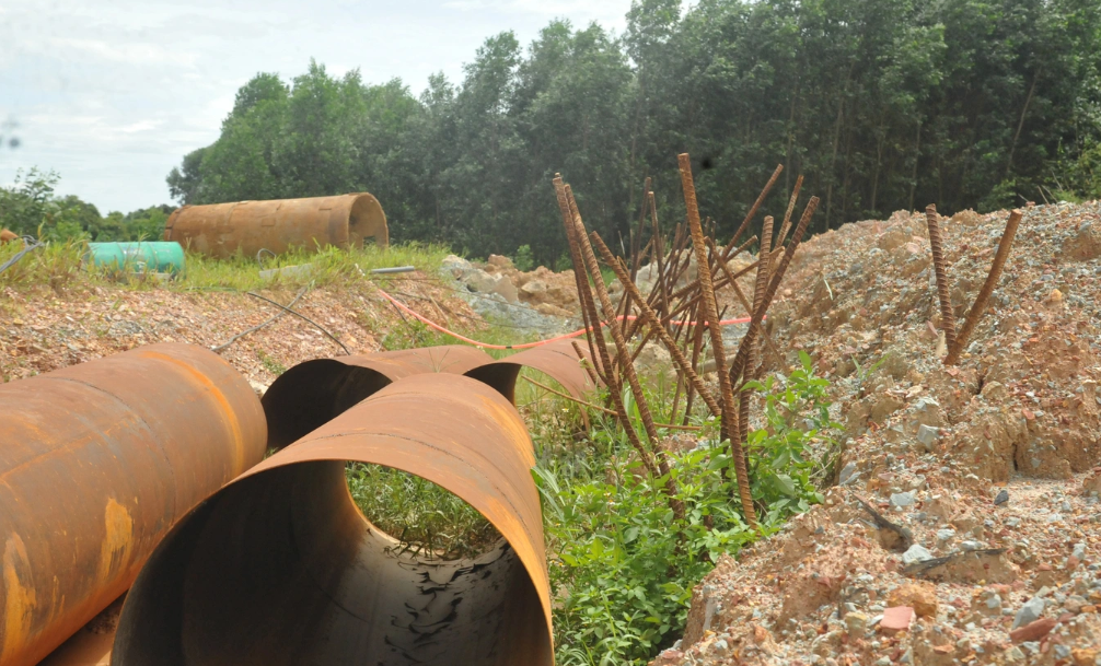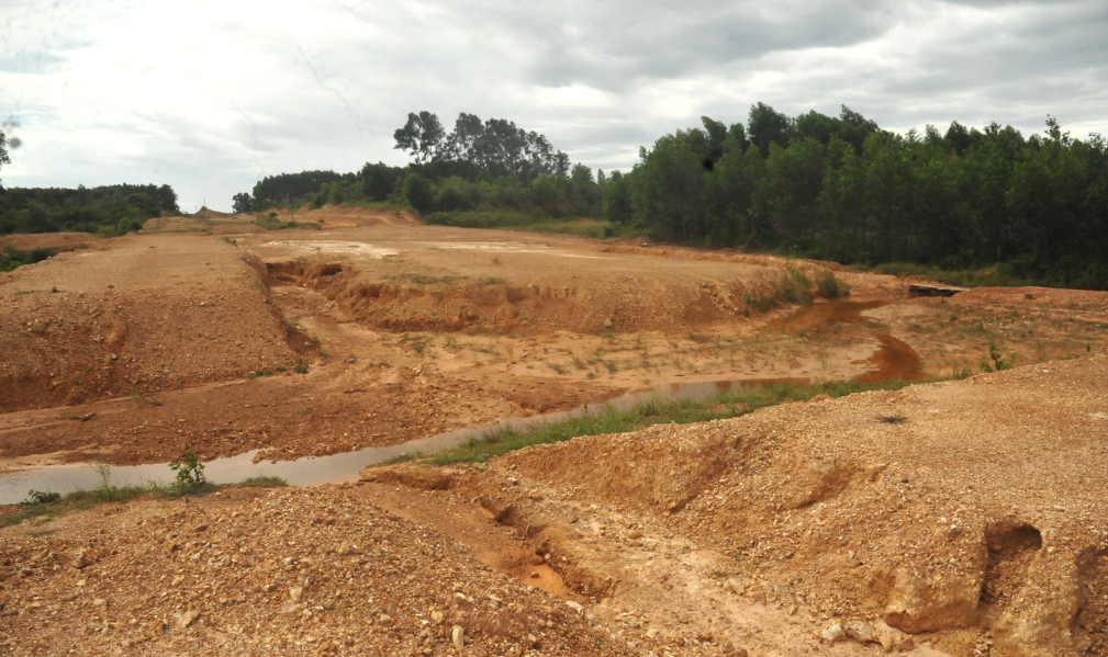 Theo ghi nhận tại dự án, một số vị trí, đơn vị thi công bóc lớp phong hóa nhưng không thi công nên cỏ dại mọc um tùm. Sau những đợt mưa lớn nhiều đoạn bị xói lở, nước đọng thành ao, rãnh, một số đất đá tràn xuống ruộng của người dân. Cả công trường vẫn còn ngổn ngang, các thanh sắt, vật liệu bị hoen rỉ sau thời gian dài không được bảo quản.