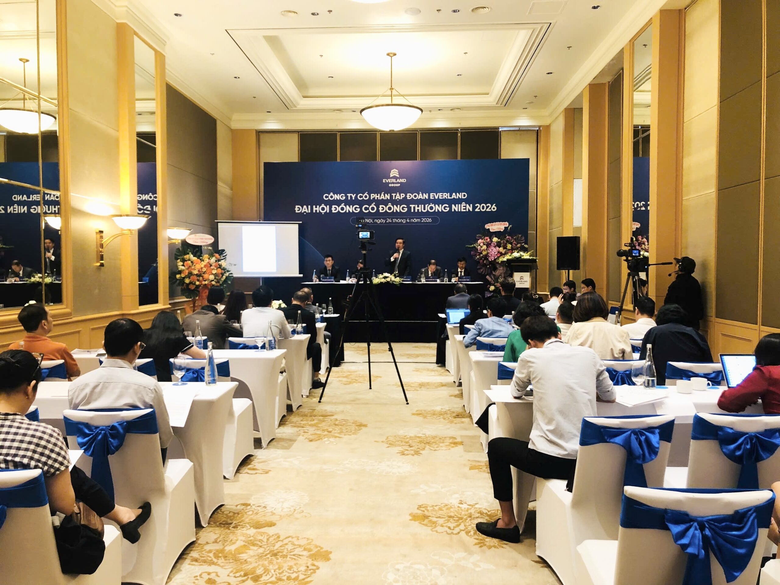 Ngày 24/4/2026, Công ty CP Tập đoàn Everland (mã chứng khoán: EVG) tổ chức Đại hội đồng cổ đông thường niên tại Hà Nội với sự tham dự của hơn 7.000 cổ đông. Đại hội đã thông qua kế hoạch kinh doanh năm 2026 với các chỉ tiêu tăng trưởng cao, đồng thời xác lập rõ định hướng nâng cao chất lượng tăng trưởng và phát triển bền vững trong trung và dài hạn.
