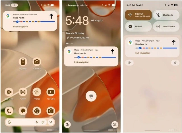 Theo PhoneArena, một trong những tính năng được người dùng Android mong chờ nhất cuối cùng bắt đầu xuất hiện, đó là khả năng xem chỉ đường Google Maps ngay trên màn hình khóa và thanh trạng thái. Cải tiến này hứa hẹn sẽ chấm dứt tình trạng phải chuyển qua lại giữa các ứng dụng và bỏ lỡ các ngã rẽ quan trọng.