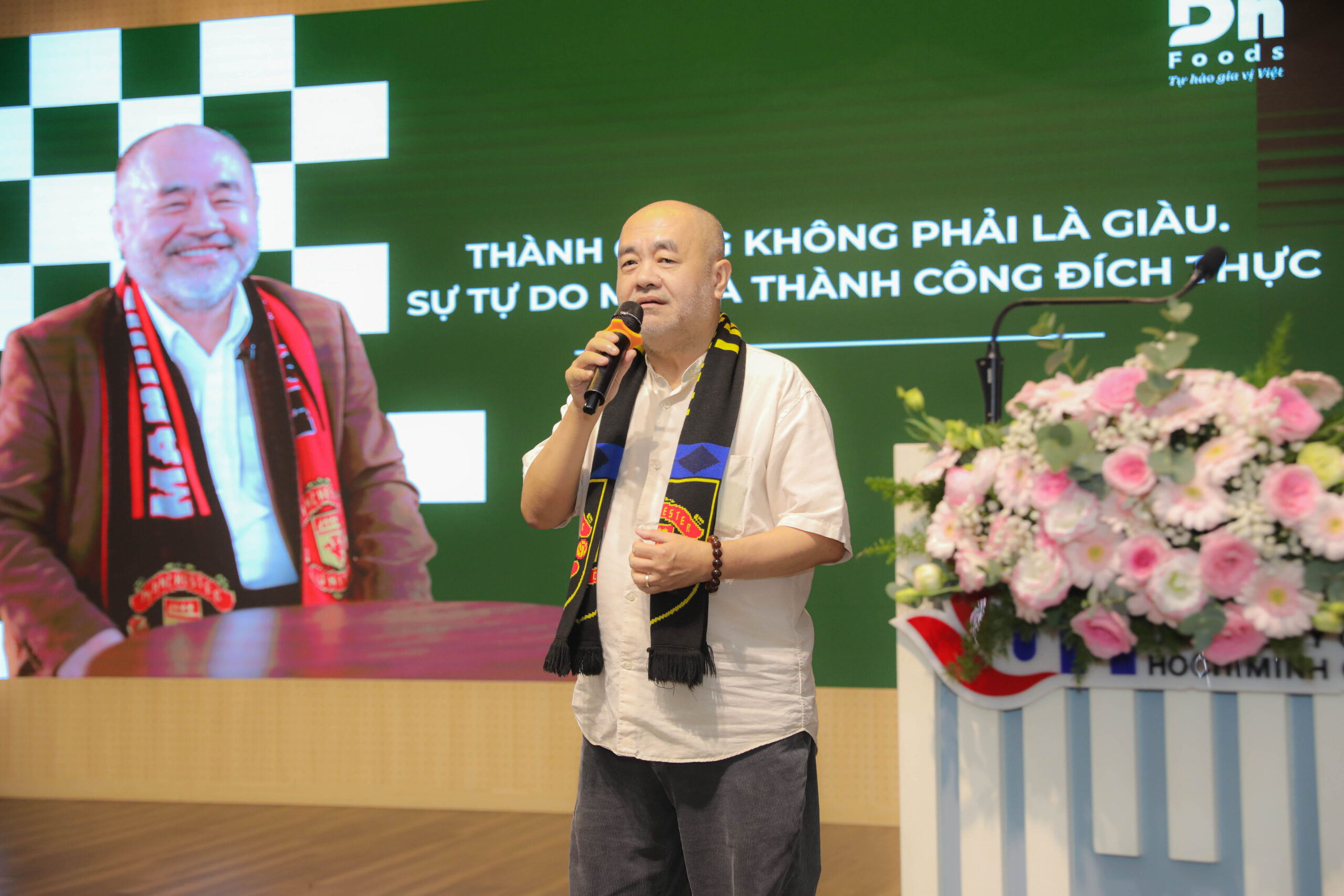 Tại sự kiện, ông Nguyễn Trung Dũng, Tổng Giám đốc DH Foods đã chia sẻ nhiều câu chuyện truyền cảm hứng, khuyến khích sinh viên dám nghĩ, dám làm và mạnh dạn khởi nghiệp vì một tương lai xanh hơn.