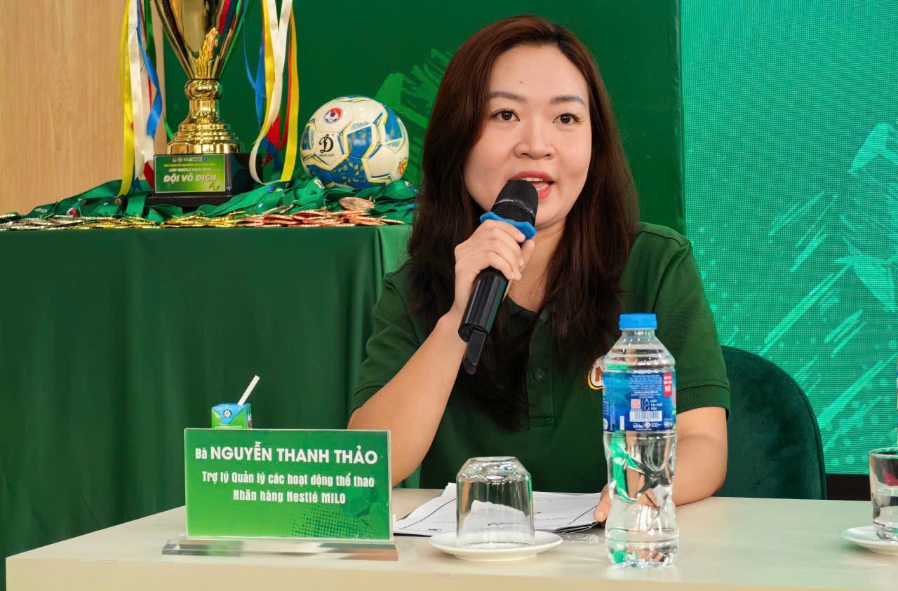 Bà Nguyễn Thanh Thảo – đại diện Nhà tài trợ MILO cam kết tiếp tục đồng hành cùng các hoạt động thể thao học đường trong thời gian tới.