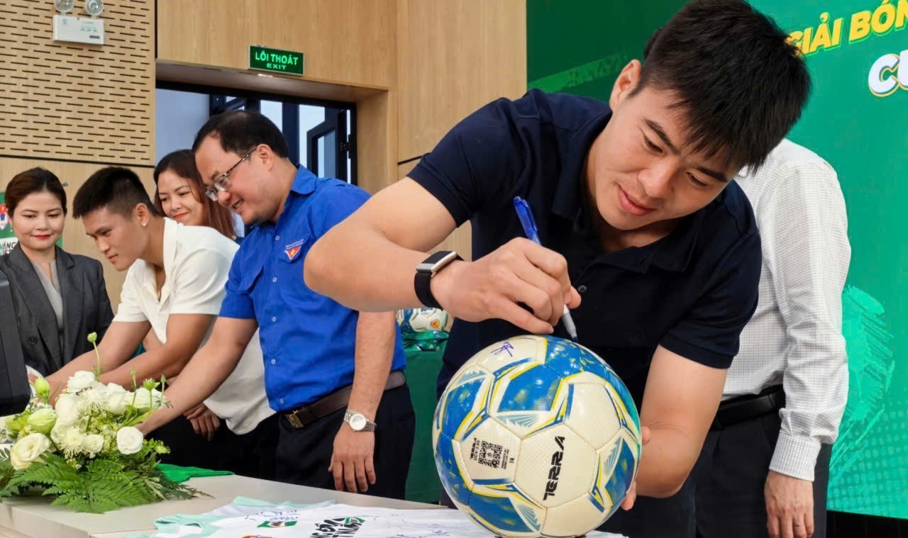 Tuấn Hải và Duy Mạnh ký tặng lên bóng và áo thi đấu của Cúp Nestlé MILO 2026.