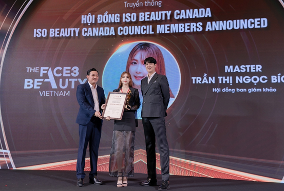 Master Trần Thị Ngọc Bích được ông Nguyễn Ngọc Huy – Chủ tịch VBBC và ông Chai Sung Hoon – Đại diện cơ quan đánh giá năng lực cá nhân ISO BEAUTY – IQCS trao bằng khen và cup Hội đồng ban giám khảo ISO BEAUTY CANADA.
