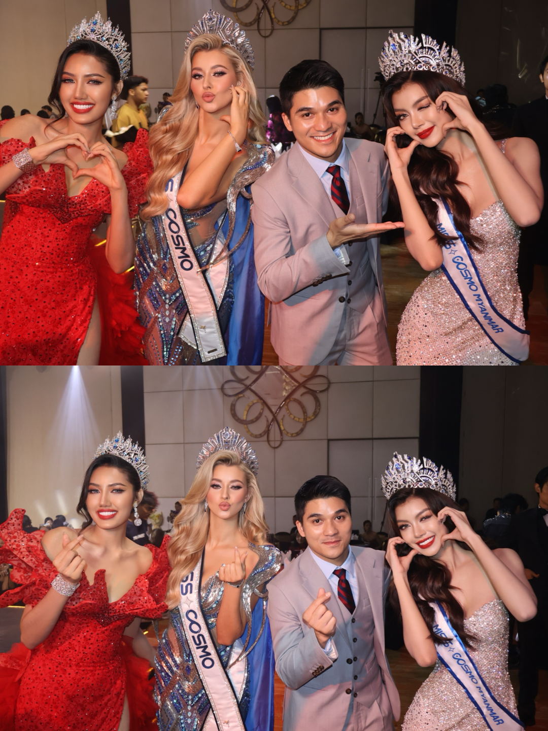 Trong khuôn khổ chuyến công du, Yolina Lindquist cũng tham dự lễ trao sash và vương miện cho đại diện Miss Cosmo Myanmar 2026 – Thae Su Nyein.
