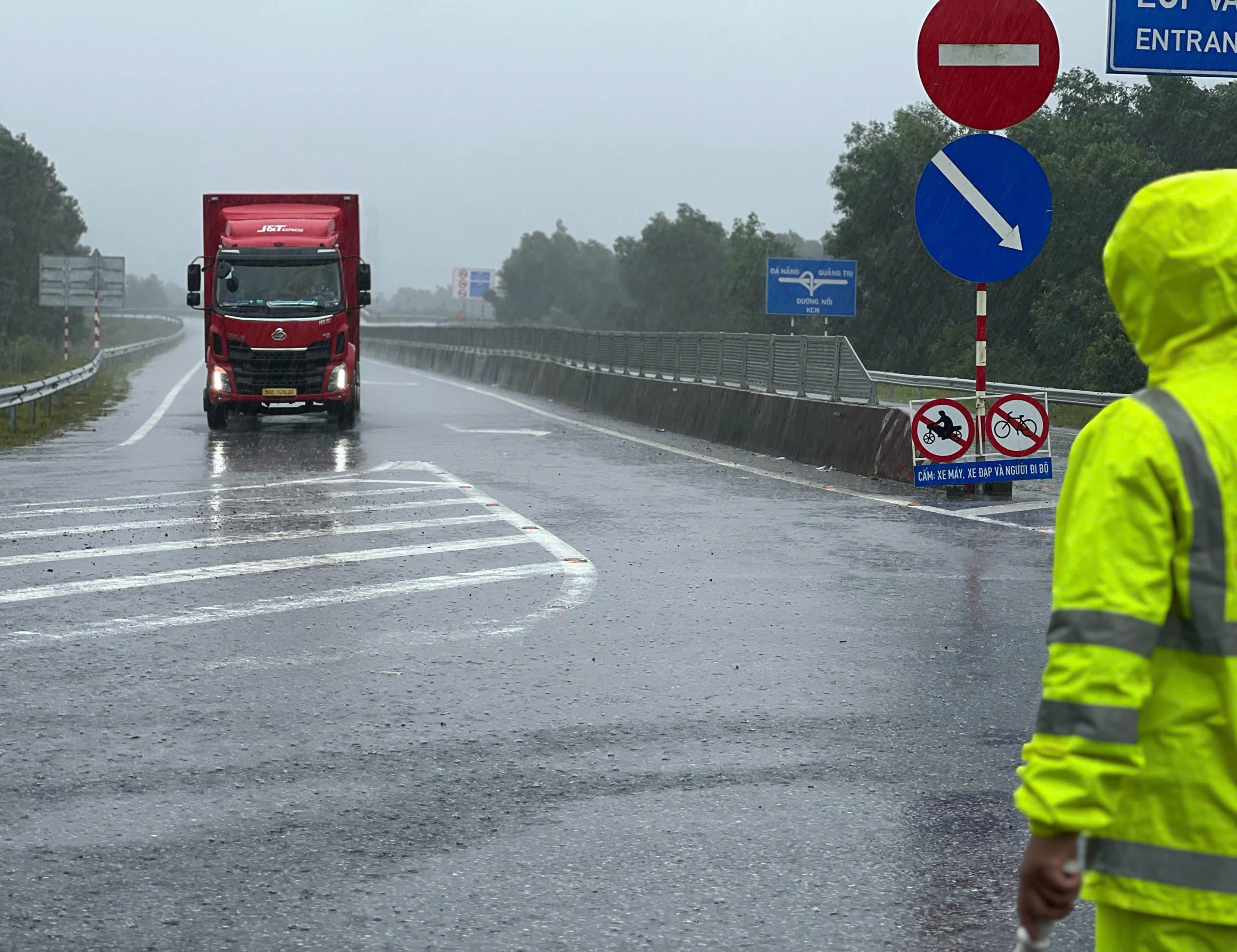 Đến thời điểm hiện tại, lực lượng CSGT vẫn túc trực tại các điểm sạt lở và các điểm ra vào của cao tốc La Sơn – Túy Loan, kịp thời hướng dẫn các phương tiện.