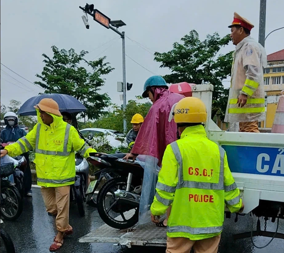 Tại khu vực trung tâm thành phố, sau khi nhiều tuyến đường ở các phường An Cựu, Hóa Châu, Phú Xuân… ngập sâu, lực lượng công an phường cũng huy động toàn bộ lực lượng xuống cơ sở hỗ trợ người vùng thấp trũng di dời tài sản, giúp đỡ người già, trẻ em, tham gia điều tiết giao thông, ngăn phương tiện vào vùng ngập nặng.