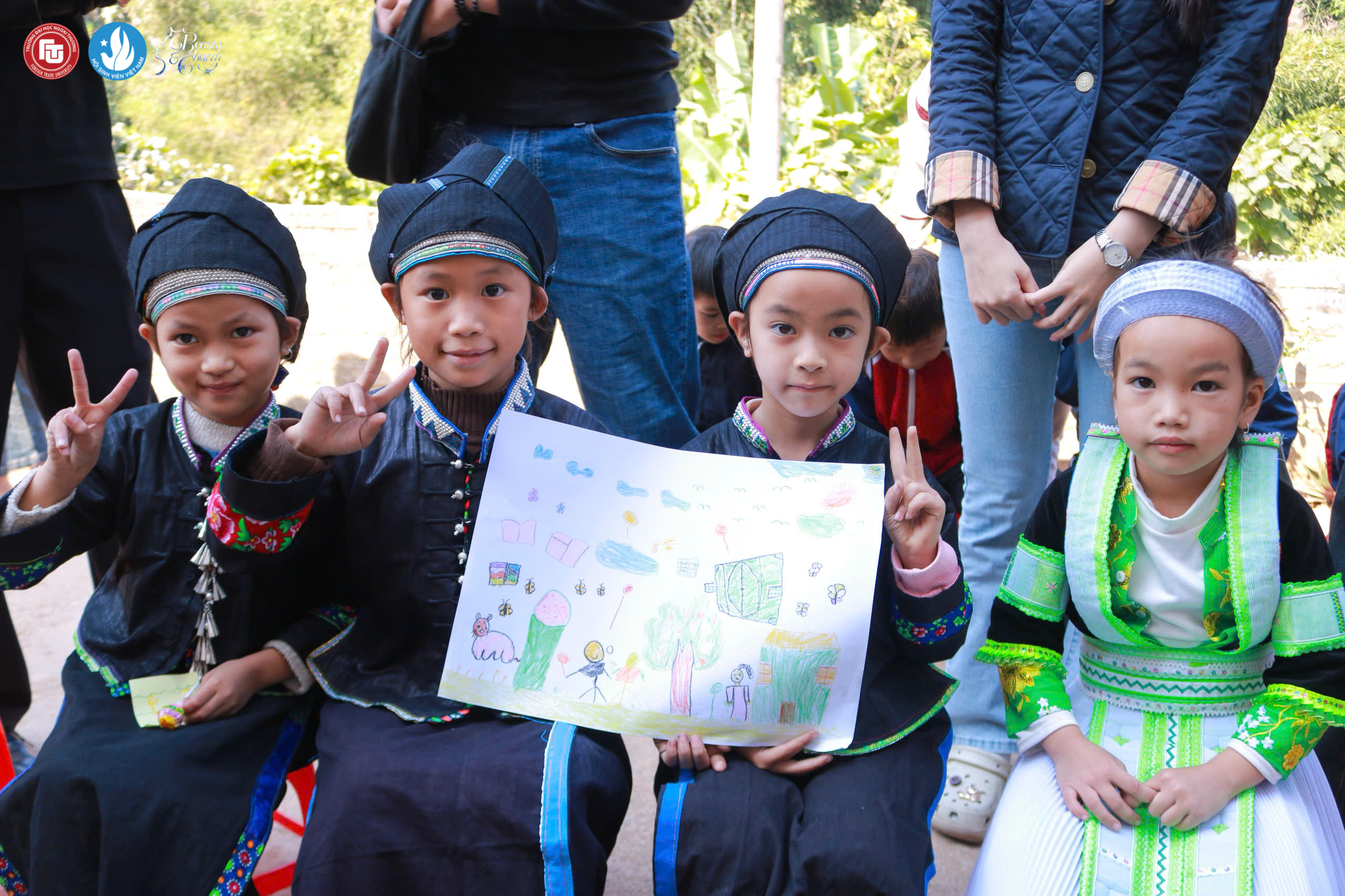 Trường Tiểu học Bum Kẹn hiện có không ít em học sinh đang sống trong những hoàn cảnh đặc biệt thiếu thốn. Với mong muốn động viên tinh thần và mang đến niềm vui cho các em, Dự án Nhân Ái đã phối hợp cùng 12 cặp Miss & Manhunt tổ chức một ngày giao lưu sinh hoạt với nhiều hoạt động phong phú như vẽ tranh, tham gia trò chơi, biểu diễn văn nghệ và liên hoan. Thông qua chương trình, các thí sinh Duyên dáng Ngoại thương đang từng bước lan tỏa thông điệp sẻ chia đến cộng đồng, chung tay hỗ trợ những em nhỏ có hoàn cảnh khó khăn.