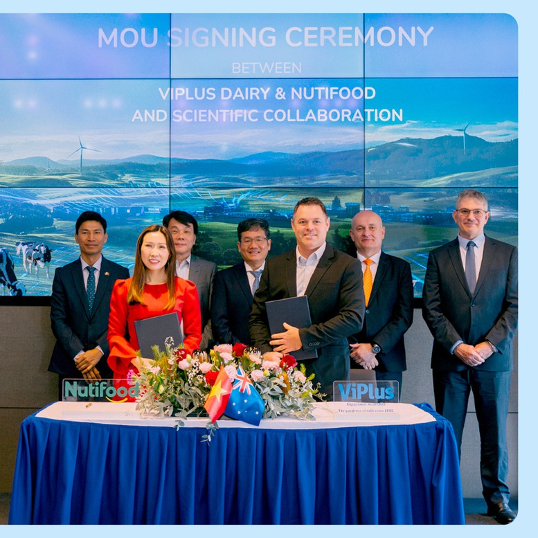 Trong dòng chảy đó, sự hợp tác giữa Nutifood (Việt Nam) và ViPlus Dairy (Australia) được xem là một bước tiến chiến lược. ViPlus Dairy là doanh nghiệp hơn 130 năm tuổi đến từ vùng Gippsland, “thủ phủ bò sữa” của Australia. Đây là một trong những thương hiệu biểu trưng cho triết lý “thuận tự nhiên” trong sản xuất sữa: Đàn bò được chăn thả tự do, nguồn thức ăn tự nhiên và quy trình quản lý nghiêm ngặt. Khi bắt tay cùng Nutifood – doanh nghiệp Việt gắn liền với sứ mệnh “nâng chuẩn dinh dưỡng cho người Việt”, hai bên đã hình thành liên doanh ViPlus Nutritional Australia mang tầm quốc tế.