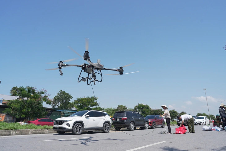 Thái Nguyên: Drone chở thuốc vào vùng lũ cho bé 4 tháng tuổi sốt cao