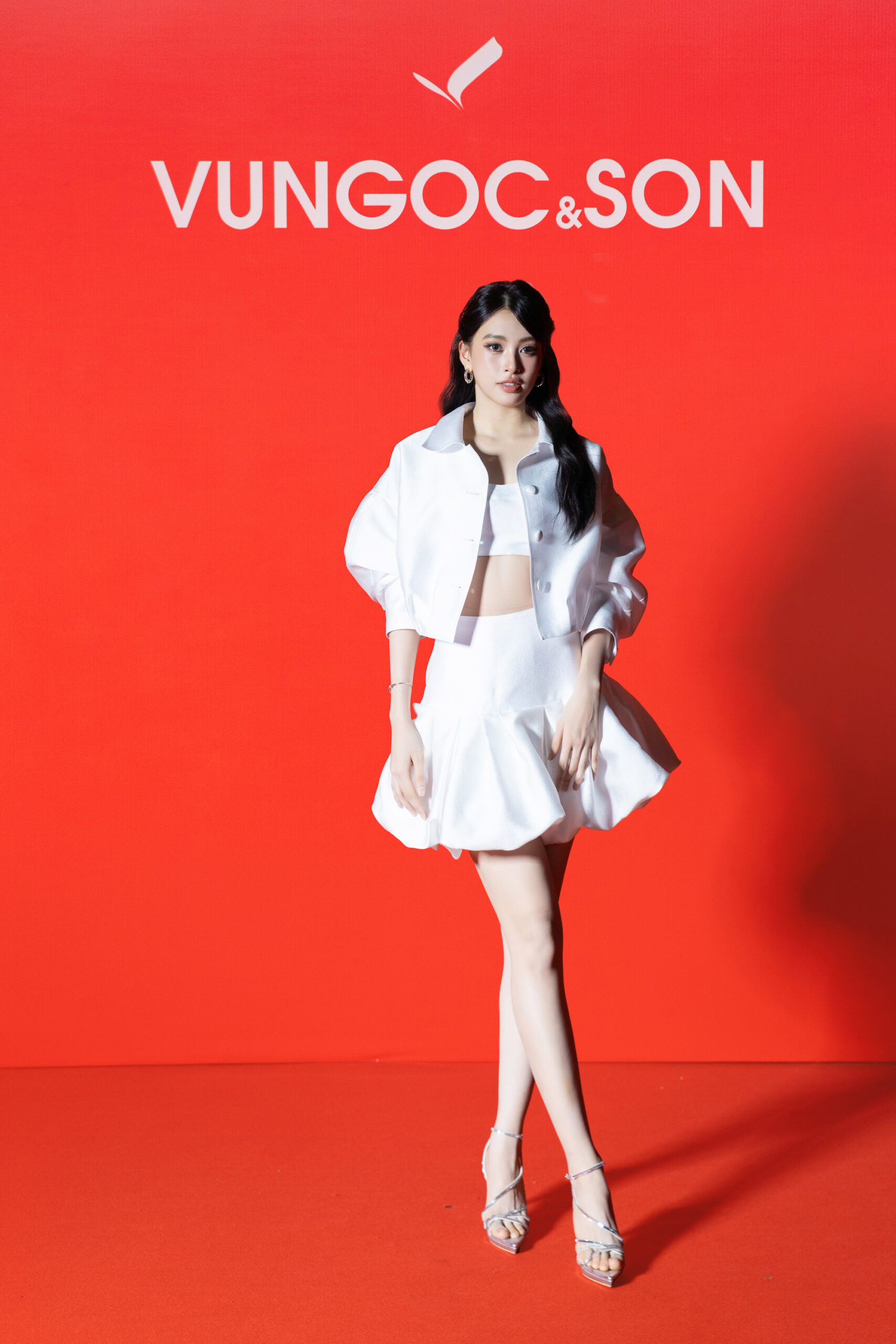 Xuất hiện trong dresscode theo chủ đề đêm tiệc, các khách mời đã cùng nhau vẽ nên một “bức tranh thời trang” sang trọng và tinh tế. Mỗi bộ trang phục là một tuyên ngôn phong cách riêng, đồng thời tôn vinh tinh thần haute couture và ngôn ngữ thẩm mỹ đặc trưng của VUNGOC&SON.