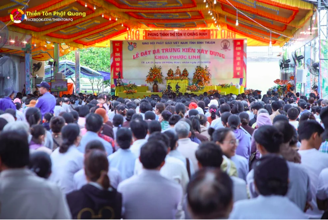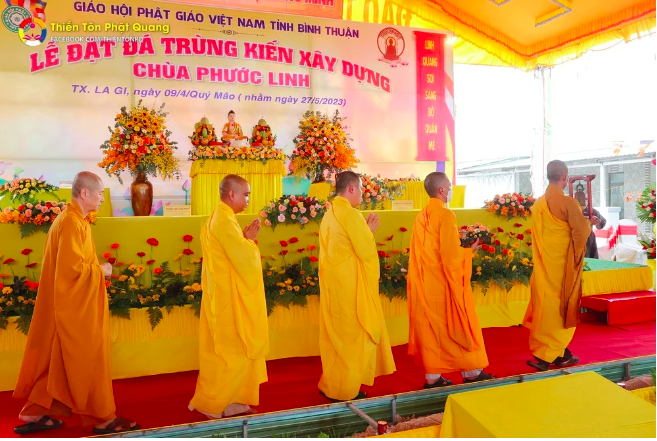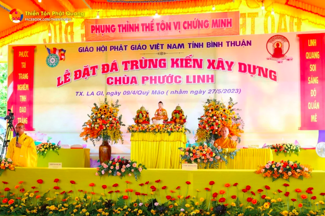 Sáng ngày 27/05/2023 (nhằm ngày 09/04/Quý Mão), nhận lời mời của ĐĐ Thích Quảng Thiện – Trưởng Ban Kiểm soát BTS Phật giáo Thị xã La Gi, trụ trì chùa Phước Linh (xã Tân Hải, thị xã La Gi, tỉnh Bình Thuận), TT Thích Chân Quang – Tiến sĩ Luật Học, Giảng sư Phật học, Viện chủ Thiền Tôn Phật Quang (BRVT) đã quang lâm Pháp toà thuyết giảng đề tài “Những chỗ nương tựa trong cuộc đời của chúng ta” gửi đến hơn 1.300 Phật tử trong và ngoài tỉnh cũng như nhân dân địa phương nhân lễ đặt đá khởi công xây dựng trùng kiến chùa Phước Linh, nhằm trang nghiêm ngôi Tam Bảo, đáp ứng nhu cầu tu học của bà con Phật tử gần xa.