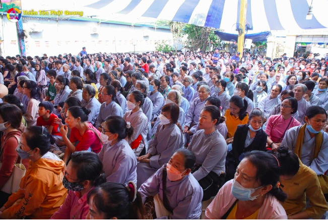 Tham dự buổi thuyết Pháp có chư tôn đức Tăng Ni các chùa, tự viện trong và ngoài tỉnh, chư tôn đức Tăng Ni Thiền Tôn Phật Quang.