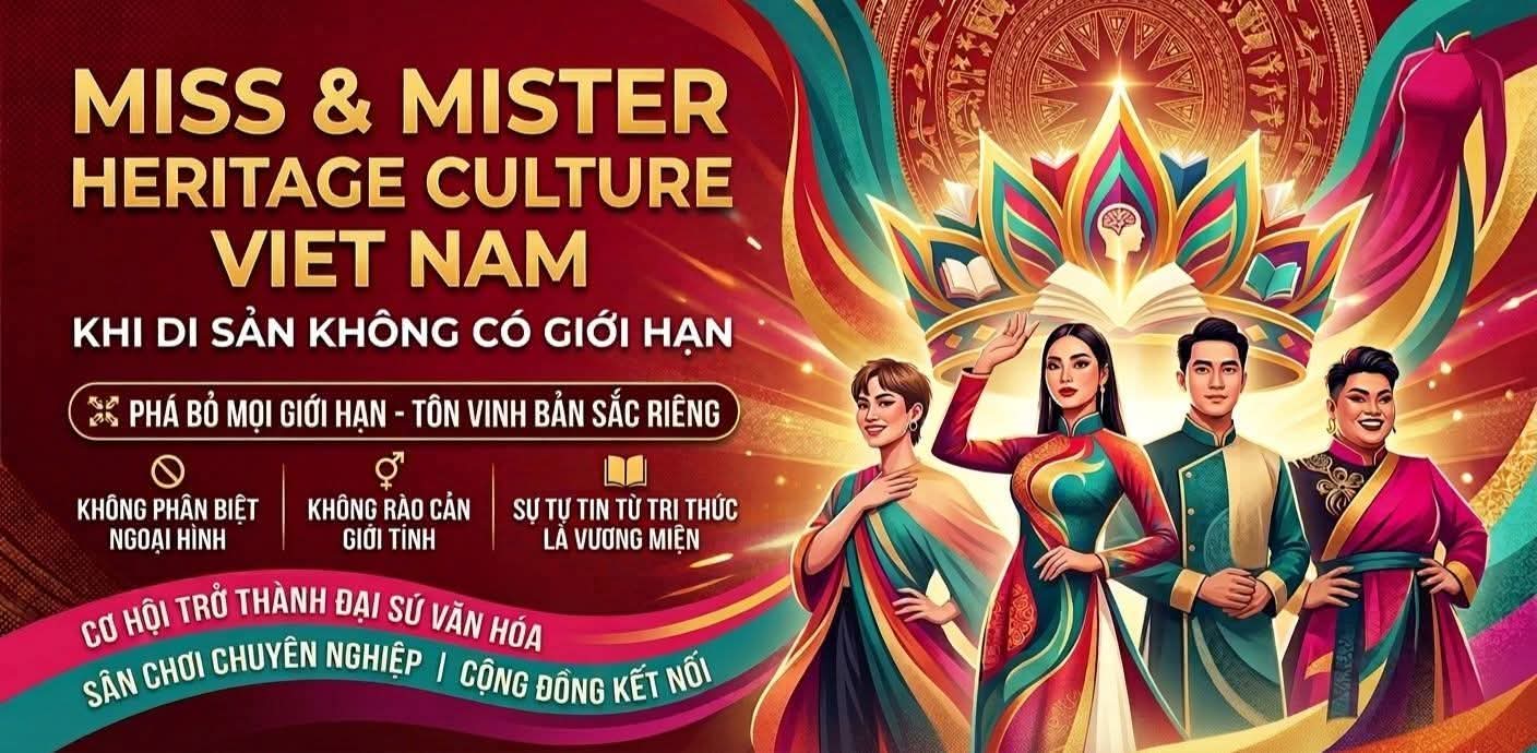 Miss & Mister Heritage Culture Viet Nam 2026 với chủ đề “Khám Phá Vẻ Đẹp, Văn Hóa Và Thiên Nhiên Của Việt Nam” đã chính thức khởi động. Đây là sân chơi nhằm tôn vinh vẻ đẹp trí tuệ, tâm hồn và hình thể của các bạn trẻ và sinh viên Việt Nam trong những bộ trang phục truyền thống bản sắc. Bên cạnh yếu tố nhan sắc, chương trình còn mang sứ mệnh nâng cao ý thức bảo tồn di sản và quảng bá hình ảnh thế hệ trẻ bản lĩnh, am hiểu lịch sử dân tộc. Đêm Chung kết hứa hẹn bùng nổ sẽ được dự kiến tổ chức vào ngày 20/06/2026 tại Thành phố Hồ Chí Minh. |