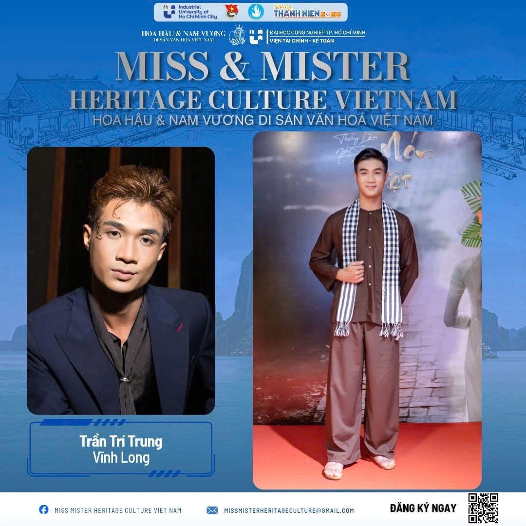 Trần Trí Trung đang là cái tên sáng giá trong chương trình Miss & Mister Heritage Culture Viet Nam sắp diễn ra vào tháng 6/2026 tới đây. Anh từng khẳng định bản thân với danh hiệu Quán Quân Người Mẫu Tài Năng Việt Nam và lọt vào Top 10 Duyên Dáng Áo Dài TP. Hồ Chí Minh. Được biết, sau khi đăng ký tham gia Miss & Mister Heritage Culture Viet Nam 2026, Trung dành nhiều tâm sức và thời gian cho việc rèn luyện hình thể để nhắm đến mục tiêu là ngôi vị cao nhất.