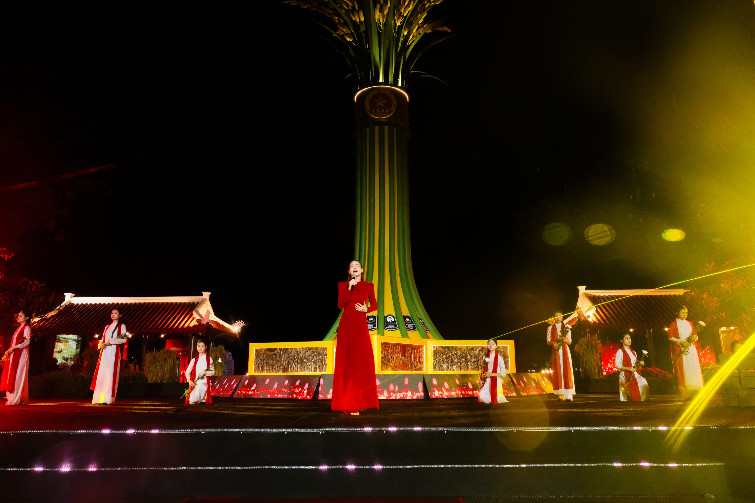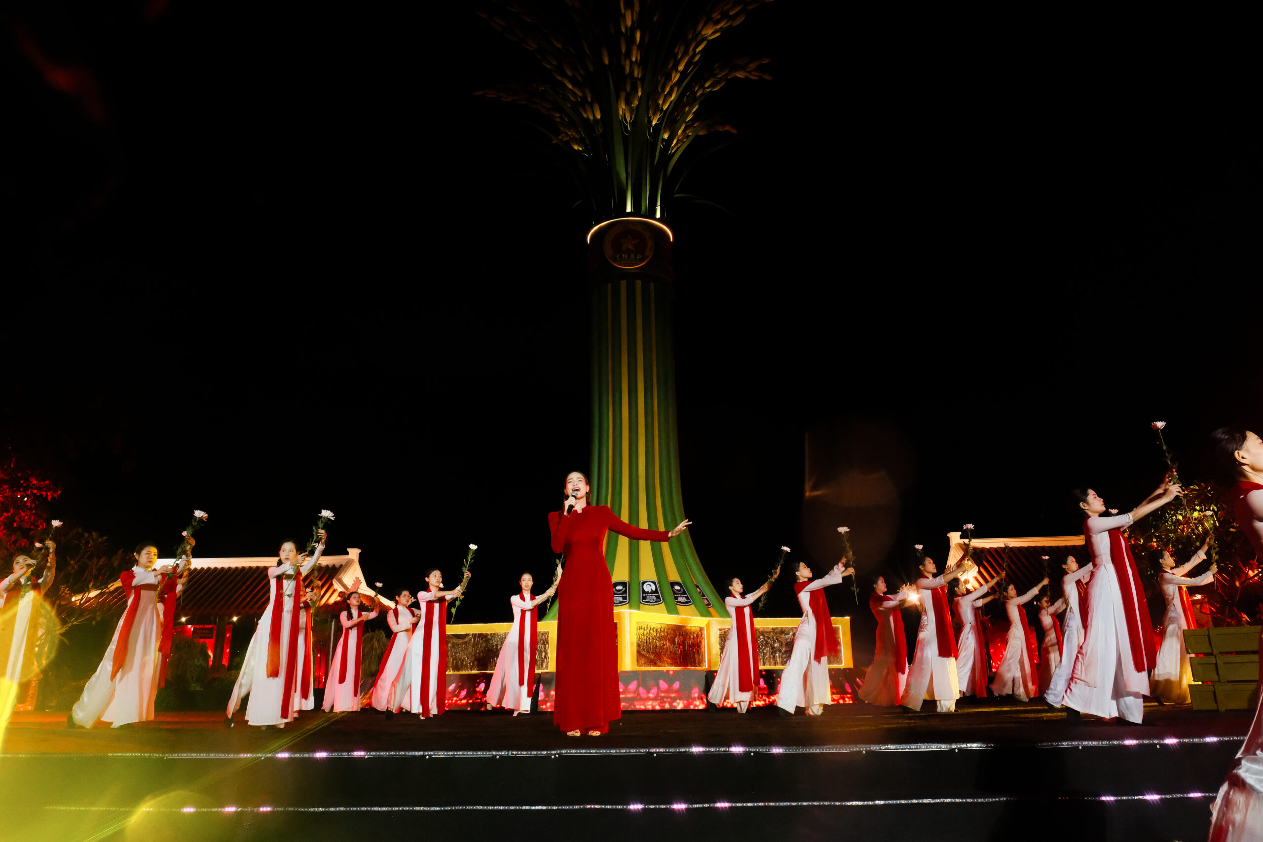 Chỉ ba ngày sau, tối 18/9 tại Quảng Trị, nữ ca sĩ tiếp tục để lại dấu ấn mạnh mẽ trong chương trình “Lời Tri Ân – Dòng Sông Hoa Lửa”. Lần này, với tà áo dài đỏ, Hồ Ngọc Hà thể hiện “Màu hoa đỏ” giữa cơn mưa nặng hạt, mang đến một khoảnh khắc xúc động khi giọng hát và nước mắt của cô hòa cùng trời mưa, gửi trọn tình cảm tri ân đến các anh hùng liệt sĩ.