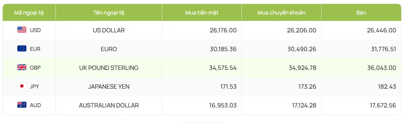 Tại ngân hàng Agribank, tỷ giá USD được niêm yết giá ngày 30/9 mua vào ở mức 26.270 đồng/USD, giá bán ra ở mức 26.446 đồng/USD.