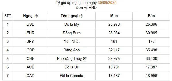 Ngoài ra, Ngân hàng Nhà nước cũng công bố tỷ giá của các ngoại tệ khác cụ thể:Theo phân tích của các chuyên gia, đồng USD giảm giá trong phiên những phiên giao dịch vừa qua sau khi các dữ liệu kinh tế công bố kém khả quan hơn dự báo, trong bối cảnh giới đầu tư chờ đợi nguy cơ chính phủ Mỹ phải đóng cửa, có thể làm gián đoạn việc phát hành báo cáo việc làm phi nông nghiệp hằng tháng trong tuần này.