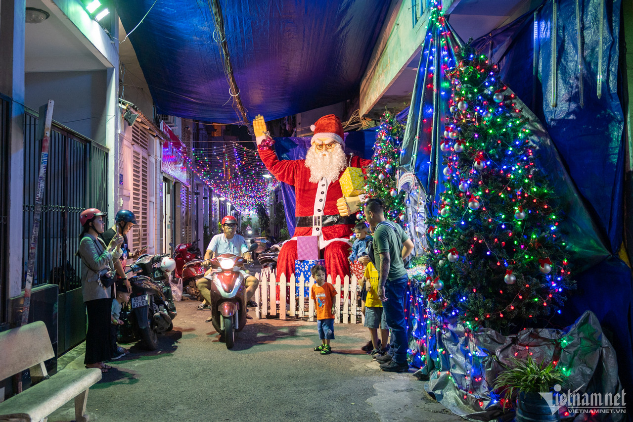 Xung quanh các con hẻm xóm đạo Lộc Hưng cũng được trang trí đẹp mắt với những tiểu cảnh hang đá, ông già Noel lớn. Được biết người dân nơi đây đã chuẩn bị cho dịp lễ lớn nhất năm từ trước cả tháng.
