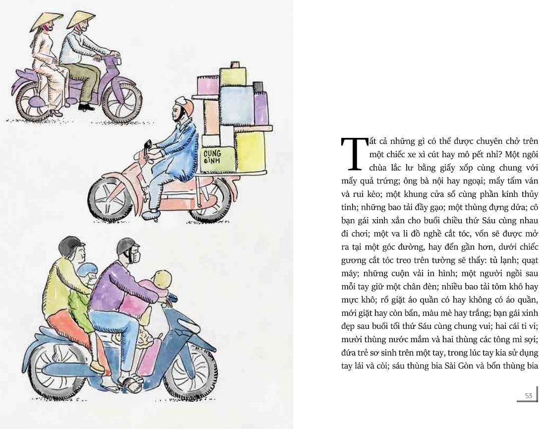 Italo Calvino từng nói “Đi du lịch không giúp chúng ta hiểu biết nhiều, nhưng việc du lịch giúp kích hoạt lần thứ hai khả năng dùng đôi mắt của chúng ta để đọc thế giới bằng thị giác”, và điều này cũng được nhìn thấy trong cách quan sát của chính Wagner. Chẳng hạn khi nhìn thấy những em bé được chở “kẹp” giữa cha mẹ trên chiếc xe máy, ông đã viết rằng: “Hẳn phải là một ký ức tuổi thơ đặc biệt Việt Nam về những giây phút được che chở an toàn tuyệt đối, mà không một người Âu châu, không một người “không Việt Nam” nào có thể cảm nhận được: phía trước là tấm lưng căng cứng của bố đang cầm lái, ngay phía sau đụng sát bụng và ngực mềm của mẹ, và chính mình, ba hay bốn tuổi”.