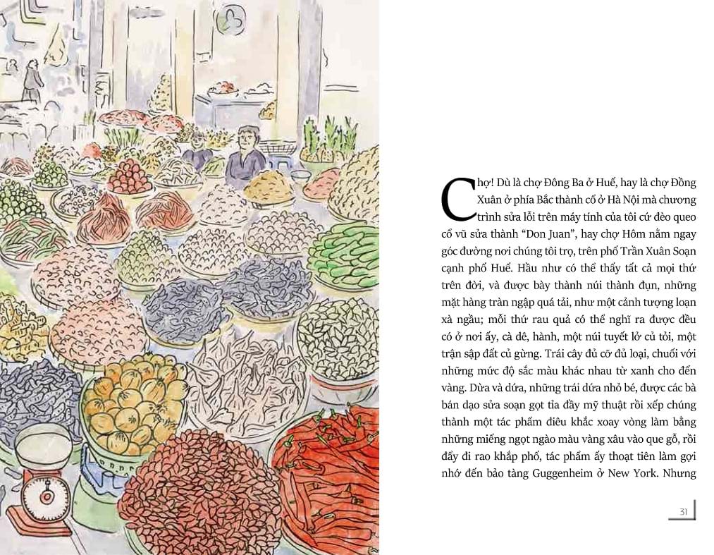 Hay ở Huế, Wagner cũng từng ngơ ngẩn câu hỏi Hoàng Phủ Ngọc Tường đặt ra rất lâu trước đây: “Tên gì mà đẹp thế: Sông Hương, sông nước hoa hay như người ta có thể dịch là sông của những mùi hương, hay có lẽ lịch sự hơn, sông của những hương thơm”. Từ những cảm quan, ông cũng thấy được một kiến trúc Huế với những sắp đặt khác lạ, có liên quan đến phong thủy mà không phải người Tây phương nào cũng có thể nhận ra: “Nơi đây đúng là một không gian vương giả, núi ở phía tây, biển ở phía đông, cho ta hiểu được tại sao một vị vua đã truyền lệnh xây nên kinh đô cho mình – Hoàng thành đồ sộ với tường hào nuôi cá vàng, với vườn thượng uyển, đền đài cùng những con rồng bằng đá dùng làm tay vịn uốn lượn sống động”…