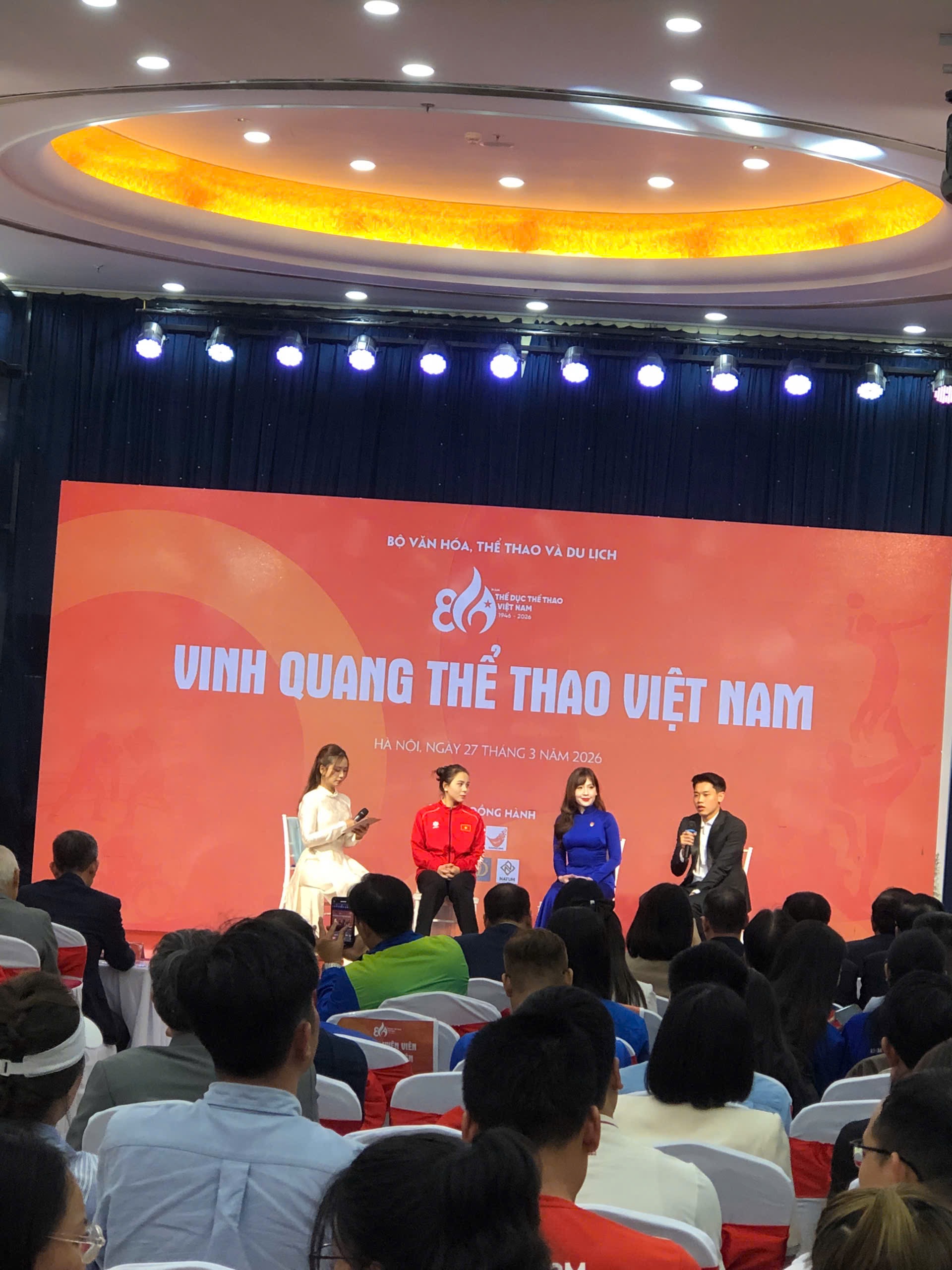 Tối 27.3, Chương trình “Vinh quang Thể thao Việt Nam”, trao thưởng cho các vận động viên, huấn luyện viên tiêu biểu toàn quốc năm 2025 và Gala giao lưu “Tháng Thanh niên – Tháng Thể thao” đã được tổ chức tại Hà Nội.