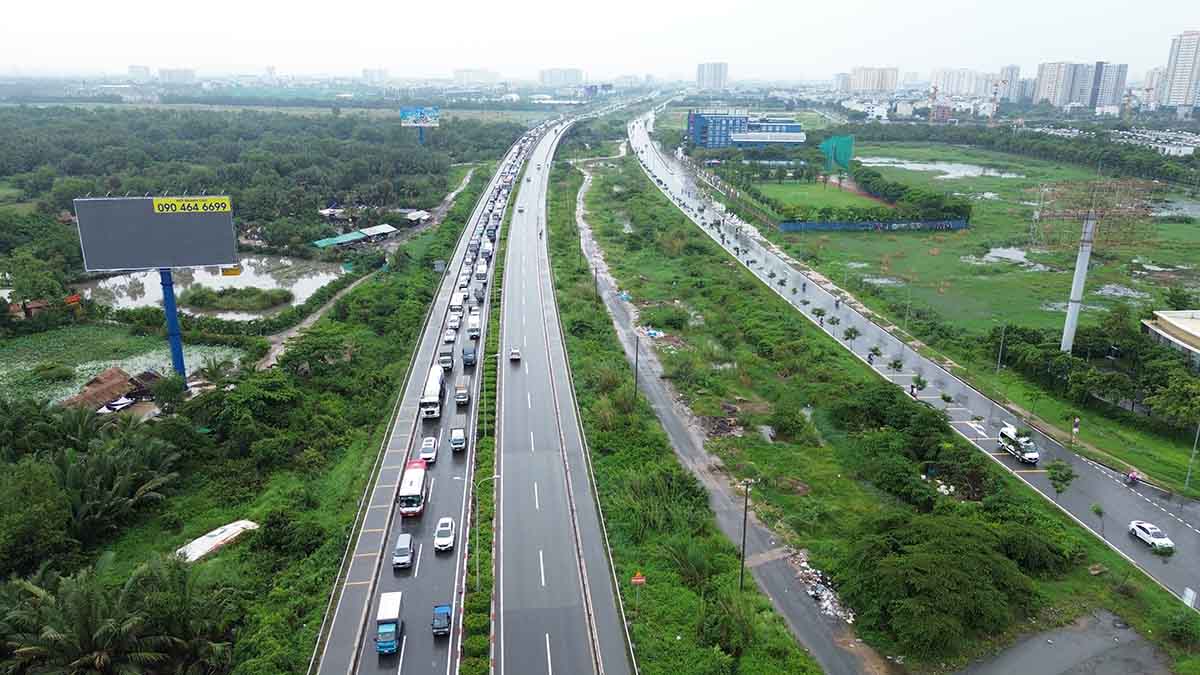 Cạnh đó, đường song hành cao tốc TPHCM – Long Thành – Dầu Giây cũng trong tình trạng ùn tắc.